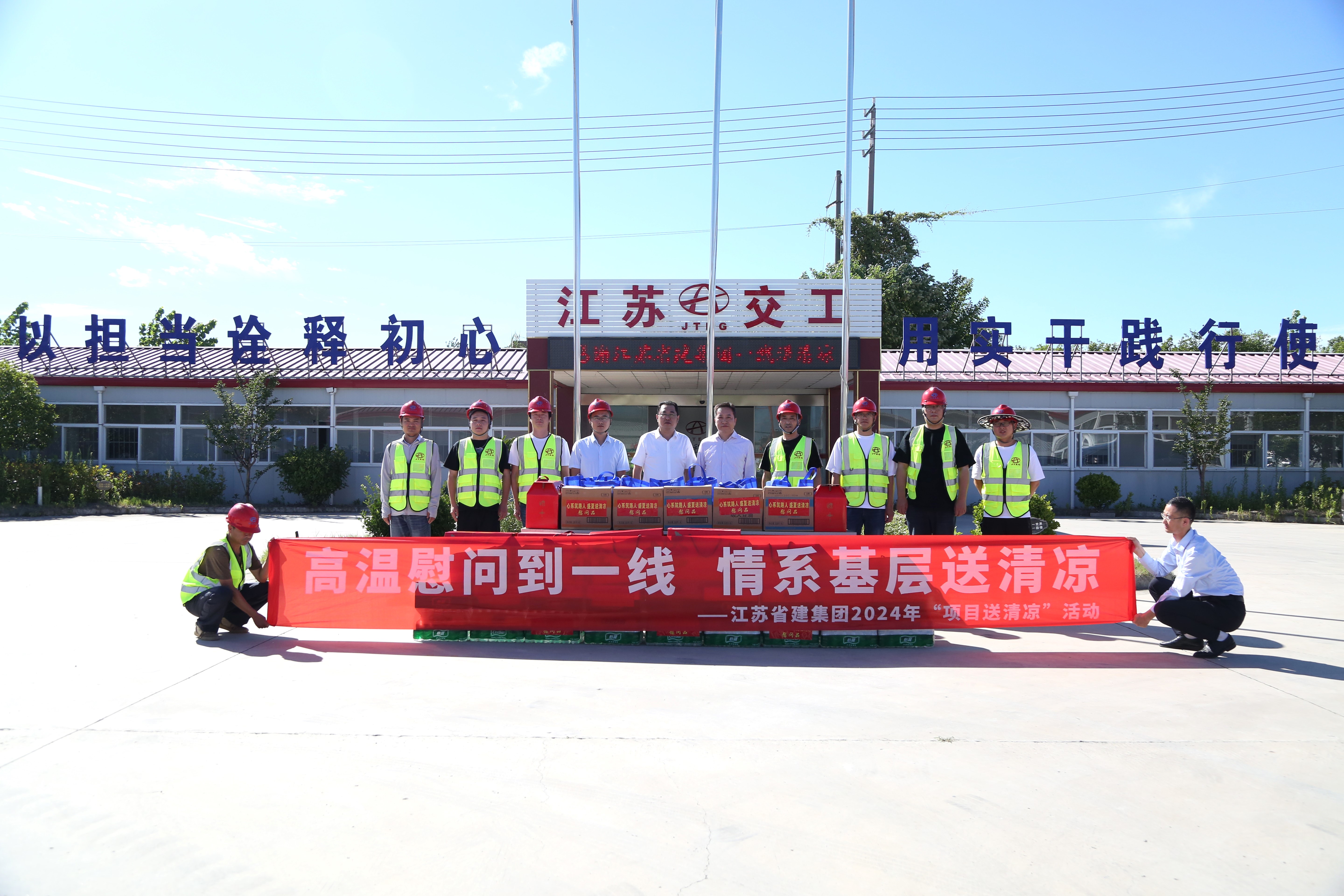 入伏以來氣溫持續(xù)飆升,“烤”驗著每一位奮戰(zhàn)在一線的省建人。為確保一線員工的健康安全,7月23日至24日,集團(tuán)黨委書記、執(zhí)行總裁張震宇,副總裁高寶儉分別帶隊,深入“水運江蘇”重點項目諫壁船閘擴容改造工程以及徐州東郭莊保障房、南京惠民大道綜合改造工程等項目現(xiàn)場,開展“高溫慰問到一線 心系基層送清涼”活動,為奮戰(zhàn)在一線的廣大職工送去集團(tuán)和黨委、工會的關(guān)懷。