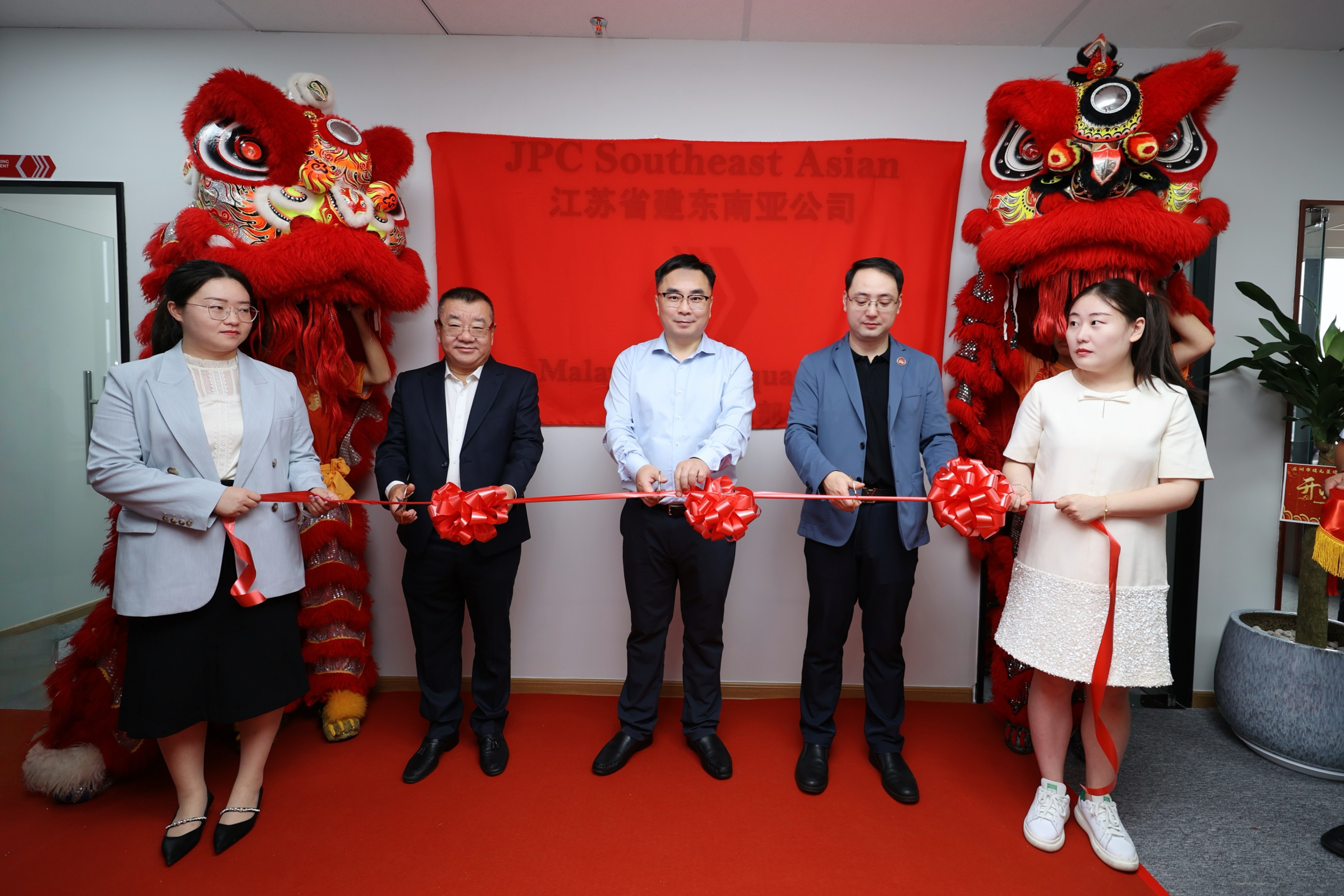 在熱烈的掌聲中,金紅雙獅騰躍起舞,蔣寧和出席活動的領(lǐng)導(dǎo)嘉賓共同為東南亞公司總部揭牌,嶄新的招牌在獅舞祥瑞中熠熠生輝,標(biāo)志著集團(tuán)海外事業(yè)發(fā)展邁向全新階段,開啟全新征程。