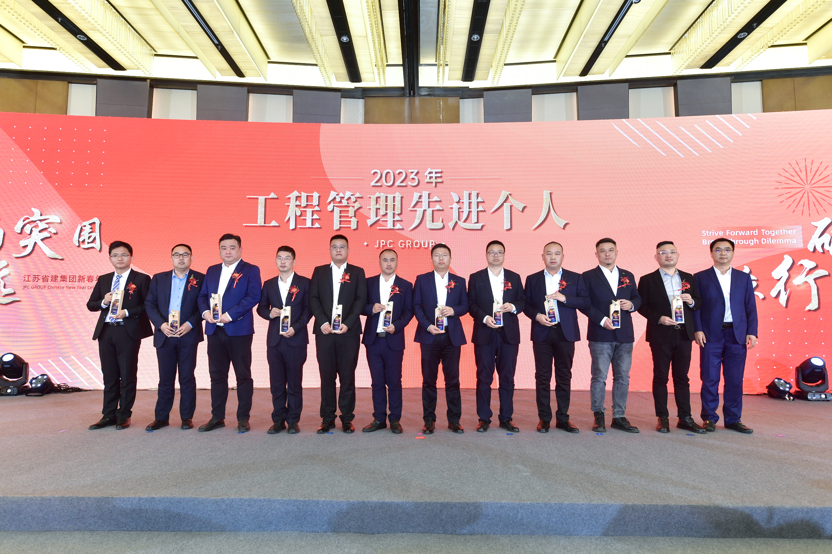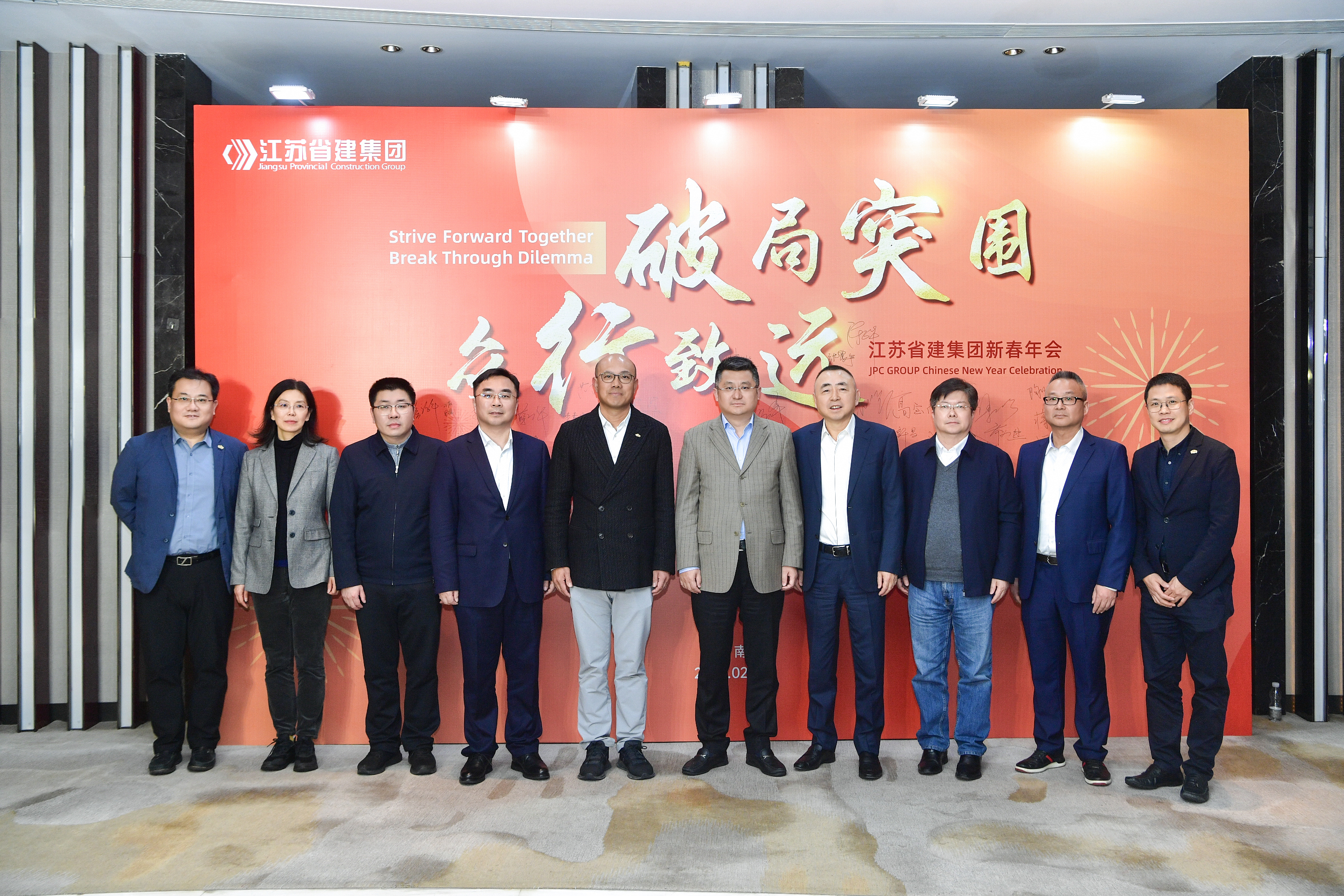 2月21日下午,“破局突圍 眾行致遠(yuǎn)”江蘇省建集團(tuán)新春年會(huì)在南京華泰萬麗酒店舉行。江蘇省住房和城鄉(xiāng)建設(shè)廳黨組成員、副廳長李震,綠地集團(tuán)執(zhí)行總裁、綠地大基建集團(tuán)總裁陳軍,省住房和城鄉(xiāng)建設(shè)廳建筑市場監(jiān)管處處長汪志強(qiáng)、工程質(zhì)量安全監(jiān)管處處長蔣惠明、行政審批處處長肖屹、省建設(shè)工程招標(biāo)投標(biāo)辦公室主任顧穎,綠地大基建集團(tuán)運(yùn)營管理中心總經(jīng)理劉青、總經(jīng)理助理鄭景申,集團(tuán)公司董事長陳正華、總裁蔣寧、黨委書記仇天青,與300余名省建人齊聚一堂,分享喜悅,見證榮耀,共啟新年奮進(jìn)之路。